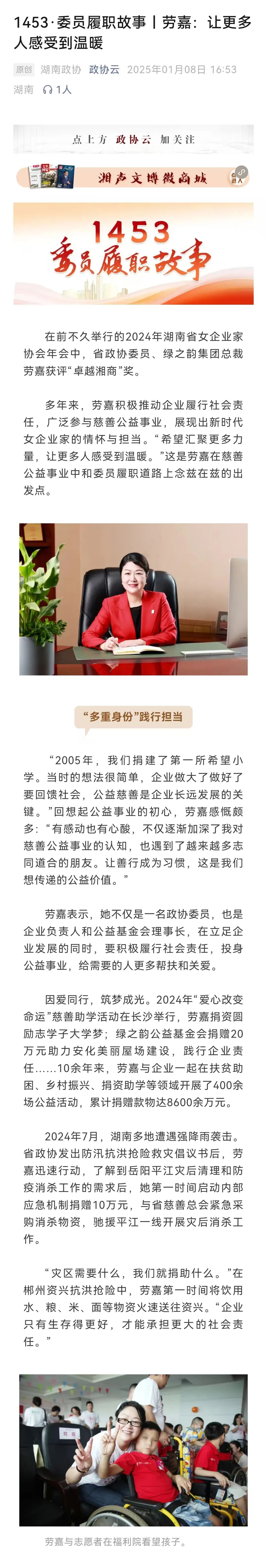 1月17日上午,中國(guó)人民政治協(xié)商會(huì)議湖南省第十三屆委員會(huì)第三次會(huì)議在長(zhǎng)沙圓滿完成各項(xiàng)議程,勝利閉幕。勞嘉委員表示,今年的政府工作報(bào)告中“穩(wěn)”與“新”這兩大關(guān)鍵詞,給自己留下了極為深刻的印象。在當(dāng)下復(fù)雜多變的經(jīng)濟(jì)形勢(shì)下,“穩(wěn)”字居于首位,為全省發(fā)展筑牢了堅(jiān)實(shí)根基,讓大家充滿底氣、信心愈發(fā)堅(jiān)定。而“新”主要體現(xiàn)在,省委省政府為實(shí)現(xiàn)“將長(zhǎng)沙打造成為全球研發(fā)中心城市”這一宏偉目標(biāo),相繼出臺(tái)了一系列創(chuàng)新的政策與有力舉措。她堅(jiān)信,這些新動(dòng)作必將為長(zhǎng)沙乃至整個(gè)湖南的經(jīng)濟(jì)發(fā)展注入磅礴動(dòng)力,推動(dòng)區(qū)域經(jīng)濟(jì)實(shí)現(xiàn)質(zhì)的飛躍。她還特別指出,報(bào)告中提及要持續(xù)在文旅融合的系統(tǒng)打造、區(qū)域聯(lián)動(dòng)、景點(diǎn)互通以及科技賦能等方面發(fā)力,這與她一直以來(lái)重點(diǎn)關(guān)注的領(lǐng)域高度契合。湖南不僅坐擁豐富多彩的旅游資源,還蘊(yùn)含著博大精深的中醫(yī)藥文化精髓。在此基礎(chǔ)上,進(jìn)一步推動(dòng)“中醫(yī)藥 + 文旅”深度融合,能夠打造出獨(dú)具湖南特色的產(chǎn)業(yè)發(fā)展新模式,從而將湖南的資源優(yōu)勢(shì)、文化優(yōu)勢(shì)切實(shí)轉(zhuǎn)化為市場(chǎng)優(yōu)勢(shì)與經(jīng)濟(jì)優(yōu)勢(shì)。這不僅能為湖南文化強(qiáng)省建設(shè)貢獻(xiàn)關(guān)鍵力量,還將為鄉(xiāng)村振興提供強(qiáng)大助力,開(kāi)辟出一條獨(dú)具特色的發(fā)展之路。